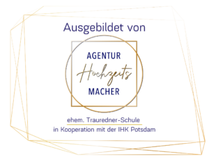 Um professionell vorbereitet zu sein, habe ich ein Seminar bei der Agentur Hochzeitsmacher in Berlin absolviert und eine Prüfung bei der IHK Potsdam abgelegt.